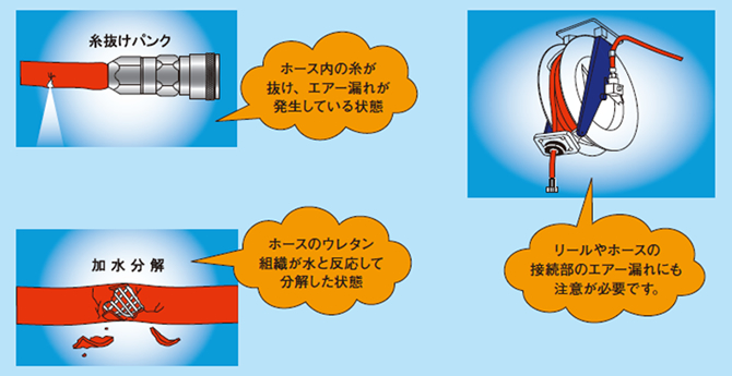 〔エアー漏れは部品交換や補修で止めることができますので、販売店へご相談ください。〕